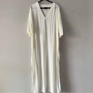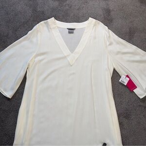 Women’s Vince Camuto Swimsuit Coverup Size Large. Wide Three-quarter sleeves. V-Neck. Full long length. Small flaw on the back shown in picture. NWT. 58” long. *No size tag, measures at a size large.