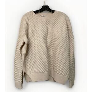 Womens Vince Cream Yak Wool Pull Crew Neck Over Knit Sweater Side Slit Sweater-S