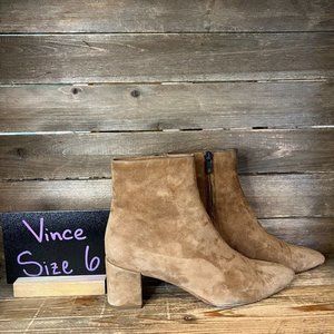 Womens Vince Hilda Brown Suede Ankle Block Heeled Boots Booties Size 6 M GUC