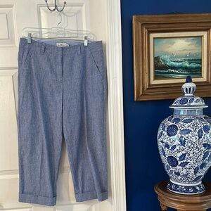 Women’s Vineyard Vines Royal Ocean Bow Front Linen Blend Cropped Pants Size 8
