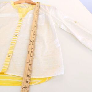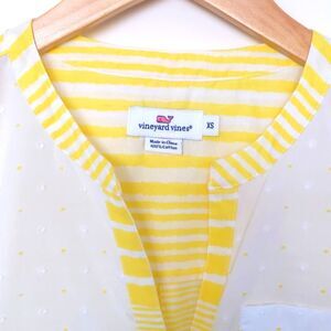 Womens Vineyard Vines White Swiss Dot Yellow Stripe Button Up Roll Sleeve Top XS