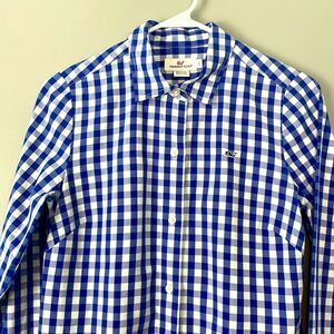 Women’s Vineyard Vines Blue and White Plaid Long Sleeve Buttoned Shirt. Size 0
