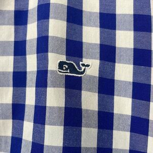 Women’s Vineyard Vines Blue and White Plaid Long Sleeve Buttoned Shirt. Size 0. In very good preowned condition. No stains. Blue whale on left chest. Armpit to pit measures approximately 16 1/2 inches. Top of shoulder down measures approximately 24 1/2 inches. Comes from a smoke free home.
