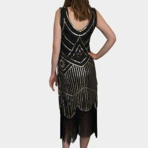 Women's Vintage 1920's Sequin Beaded Tassels Hem Flapper Dress with Accessories