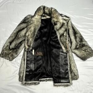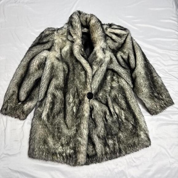 Women’s Vintage 1970’s - 1980’s Faux Fur Coat Union Made Silver Black in good preowned condition except for a couple small spots on the back of the coat near the bottom area . I’ve included some close up photos of this for you to reference. It may come out easily but I’m not sure . Feel free to ask any questions you may have.