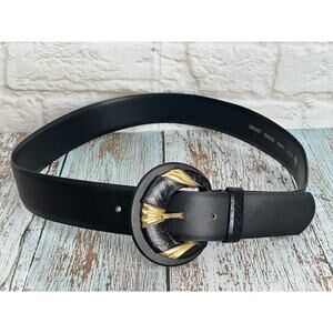 For sale is a Women's Vintage 1980 Black and Gold Tone with Accent Buckle Belt L features a stylish snake-themed design with a gold tone buckle. Made of leather, this vintage belt adds a fashionable touch to any outfit. The black color and bold snake motif make it a versatile accessory for women looking to elevate their look with a unique and trendy piece. Please review all pics carefully and let me know if you have any questions. All items come from a smoke and pet free home.