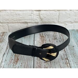 Women's Vintage 1980 Black and Gold Tone Accent Buckle Belt L