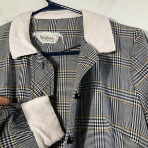 • Plaid Drop Waist Pleat Front 1/2 Button Collar 3/4 Sleeve Faux Pocket Detail School Girl Dress