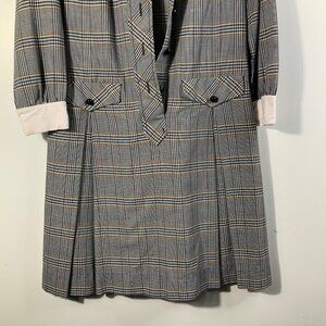 Vintage 60s 70s Kay Windsor Plaid Drop Waist Pleat Front Dress