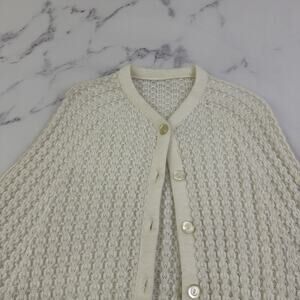 Womens Vintage 60s Shawl Poncho Sweater One Size Cream Crochet Knit Fringe Cape