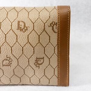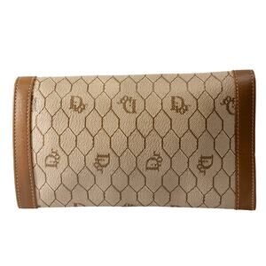 This vintage Christian Dior wallet is a must-have for any fashion-forward woman. The honeycomb pattern and beige color make it a versatile accessory that can be paired with any outfit. The envelope design and logo accents add a touch of sophistication to the wallet, making it perfect for everyday use or special occasions. Crafted from high-quality canvas fabric, this wallet is durable and built to last. Measuring 7.5 inches in length and 4.75 inches in width, it is the perfect size to carry all your essentials. This wallet is a rare find and a true gem for any vintage fashion enthusiast. This wallet is gently used in good condition. 4.75" (H) X 7.5" (W)