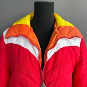 Womens Vintage 80s Snuggler ski coat - puffer - red - orange - full zip - size M