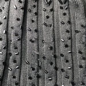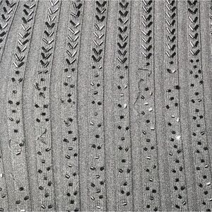 Features ribbed fabric, long sleeves, and bead details on the front and back. This timeless top fits soo good and looks amazing styled! It boasts beautiful intricate beading and is very comfortable to wear. There is plenty of stretch and it can be dressed up or down. Some of the beads are missing but it's not very noticeable (see pictures).