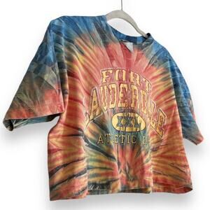 Womens Vintage 90s Fort Lauderdale Athletic Crop Tie Dye T Shirt Size Large