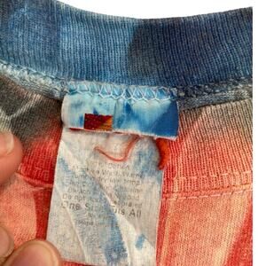 Description: Classic vintage 90s sporty, Preppy tie dye t-shirt This faded, distressed pink, Blue and yellow cropped short sleeve tee features "Fort Lauderdale XXL Athletics Department" across the chest in large, Collegiate yellow lettering and the coveted single stitch hem and sleeves. Great for school and everyday wear, pairs well with highwaist distressed denim for a classic 90s look!