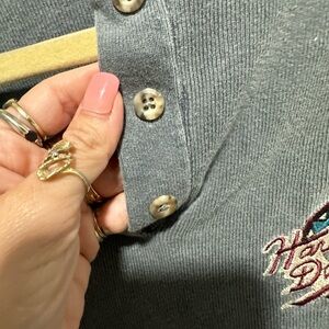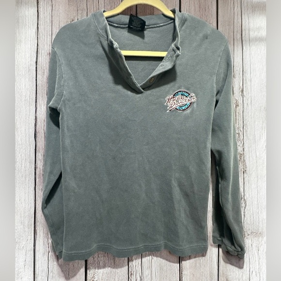 Women's Vintage 90's Harley Davidson Motorcycles Black Henley T Shirt Tee Sz L