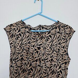 This is a true vintage 1990s Midi Dress - Featuring plant abstract all over print, high neckline, and sleeveless. 100% Polyester. Lightweight and satin like fabric material. No size tag and fabric material contents. In good pre-owned condition / normal wear / no flaws. Fits like a Medium / size 6