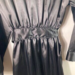 Womens Vintage 90s Victorias Secret Satin Robe Short Black OS Polyester 1/2 Slee