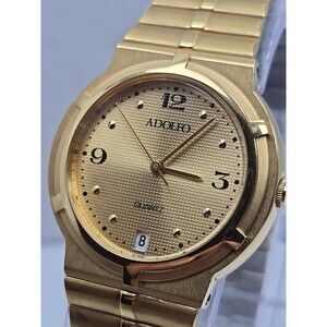 Womens Vintage Adolfo GTI Gold Tone Date 31mm Quartz Watch New Battery Dress Art