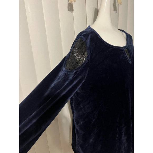 Women's Vintage America Blues Top Size L Blue Velvet Long Sleeve