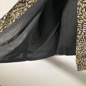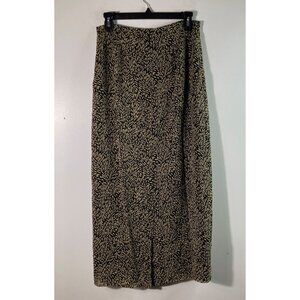 Womens Vintage Ann Taylor Silk Maxi Skirt Leaf Pattern Black Tan Lined 6 Silk Po