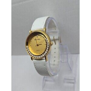 Womens Vintage Becora Gold Tone Watch Floating Rhinestones Crystals New Battery