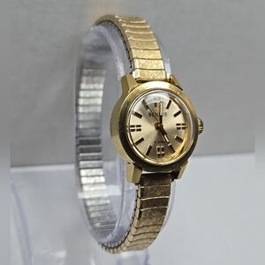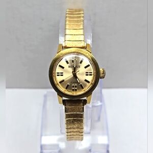 Womens Vintage Benrus Manual Wind Watch 10k R.G.F Stretch Band Runs Unique Retro