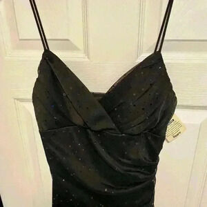 Beautiful black cocktail dress that is a high low. It was taken care of wonderfully and is in excellent condition with new tags. Measurements are in the pictures.