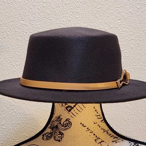 Womens Vintage Black Felt Fedora Buckle Decor Vintage - NEW