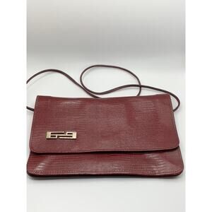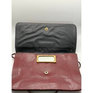Women's Vintage Burgundy Snakeskin Flap Snap Button Cross Body Clutch Bag