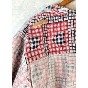 Womens Vintage Button Up Shirt Fitting Image XXL Cotton Hearts Country Cottage