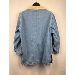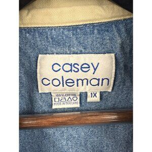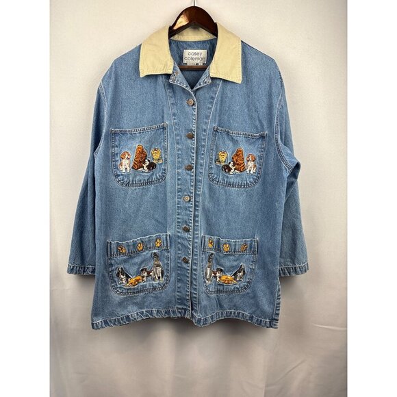 This adorable women’s vintage Casey Coleman jean jacket is embroidered with eight different types of dogs on the breast pockets and lower pockets. It’s made from 100% cotton which makes the jean material soft and warm. It’s a size 1X.