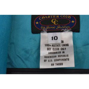Women's Vintage Charter Club by Jane Justin Turquoise Linen Blazer Pockets 10