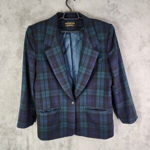 Womens Vintage Collectible Gold Plaid Wool Blazer Jacket Single Button Size XL