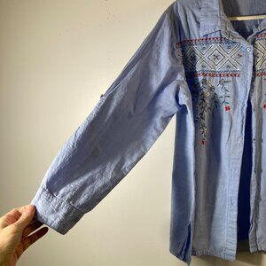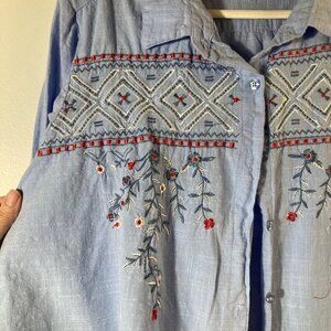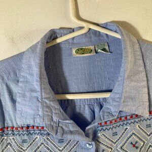 Womens Vintage Collections Etc Embroidered Button Shirt 2XL Blue White Red