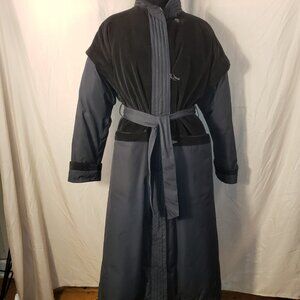 Women's Vintage DOWN CREST Black Corduroy & Fabric Full Length Puffer Coat - 7/8