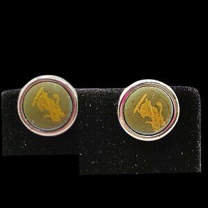 Womens Vintage Earrings Set Unique Artsy Round Studs Iguana Reptile Mixed Metals