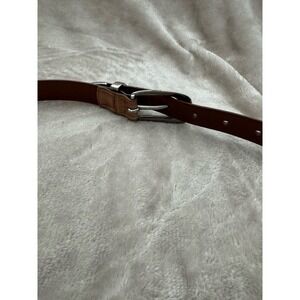 Women’s Vintage Embossed Full Grain Leather Belt Tan with Silver Buckle Size L