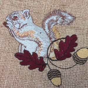 - embroidered squirrel leaves dragonfly and acorns