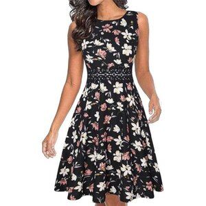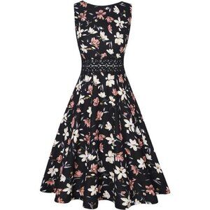 Women's Vintage Floral Lace A-Line Swing Dress - Sleeveless Cocktail Party Dress