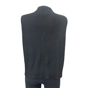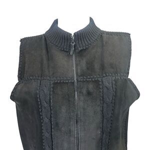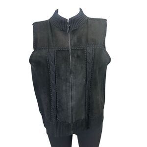 Women’s Vintage Full Zip Leather Mixed Media Ribbed Knit Sweater Vest sz Large