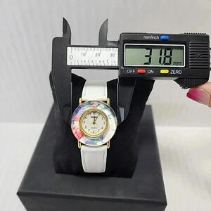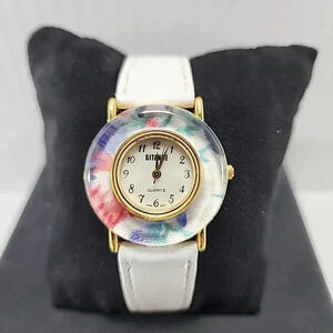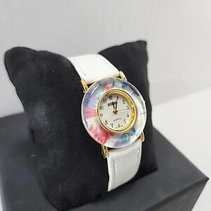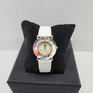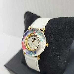 Womens Vintage Gitano Watch 32mm Gold Tone Floral Dial Leather Band New Battery