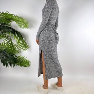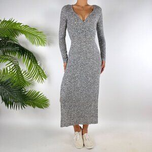 Womens Vintage Gray Bodycon Classy Casual Long Sleeve Knit Maxi Dress / Small