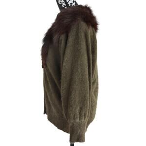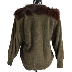 Womens Vintage Green Angora Rabbit Sweater W/ Imitation Fox - M