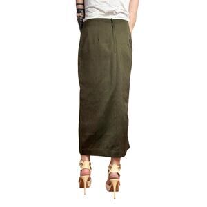 Women's Vintage Green Casual Corner Polyester Blend Maxi Skirt w/ Slit