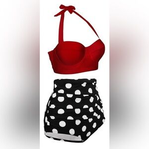 Women’s Vintage Inspired Halter Top Polka Dot High Wasted 2 Piece Bikini Retro