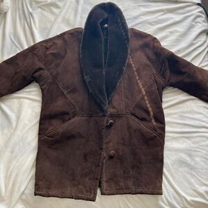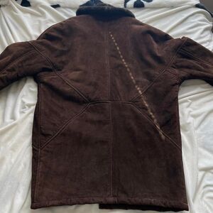 Brown Suede Shearling-Style Coat. Suede exterior with soft faux fur lining.