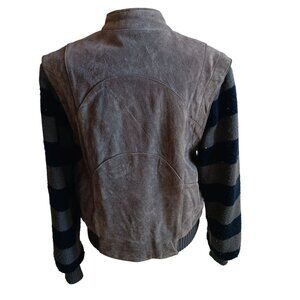 Women's Vintage Jacket Large Suede Knit Bomber Striped Grunge Learsi 1990's