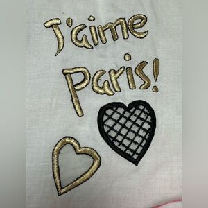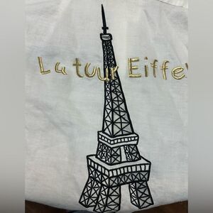 Elegant Eiffel Tower embroidery on soft linen/ramie blend for a timeless Parisian touch. Features a relaxed fit, button front, and extended length for versatile wear. Size XL – perfect for layering or a chic standalone look.