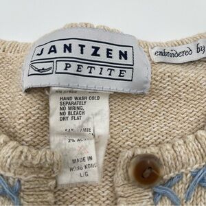 Women’s Vintage Jantzen Classics Cardigan Sweater. Hand Embroidered. Women’s Large (please see below). Item is in good pre-owned condition. May show signs of general wear. Has one loose button. Please see photos for full details of condition. Any size measurements shown are approximate. Smoke free, pet friendly home. Colors may vary slightly based on lighting.